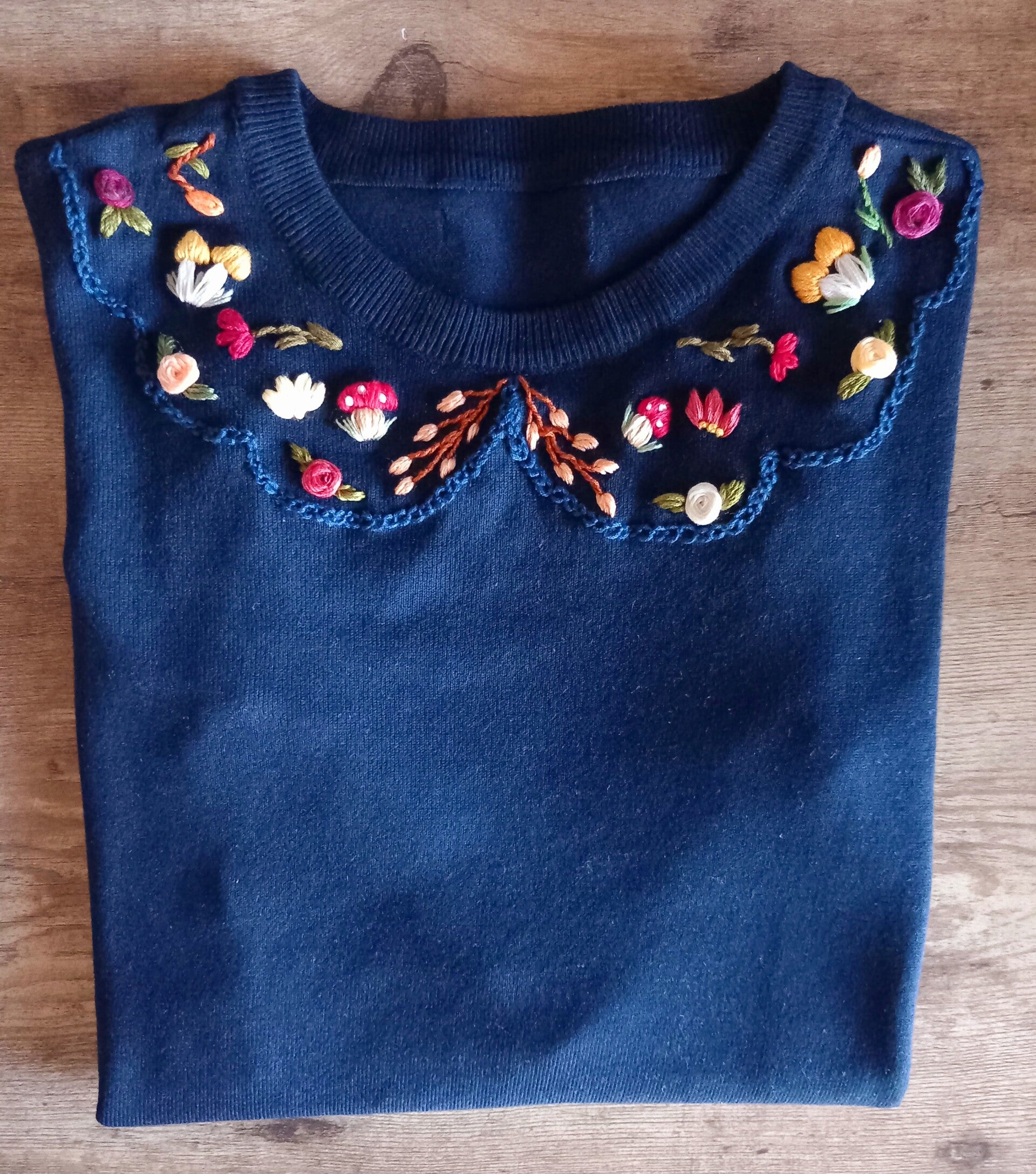 Maglioncino in viscosa, ricamo colletto fiorito realizzato in cotone.